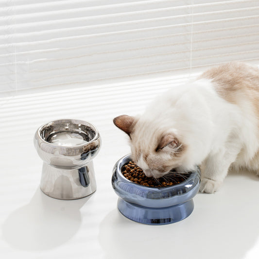 Mirror Petal ceramic cat bowl Half surrounded dog bowl Drinking bowl