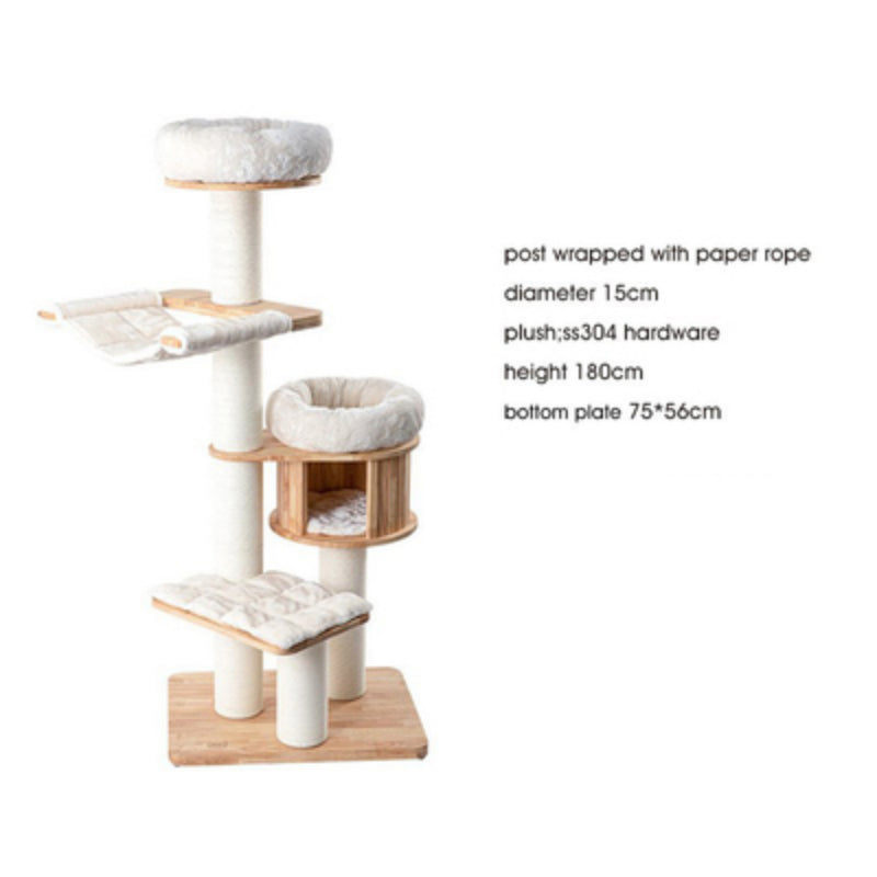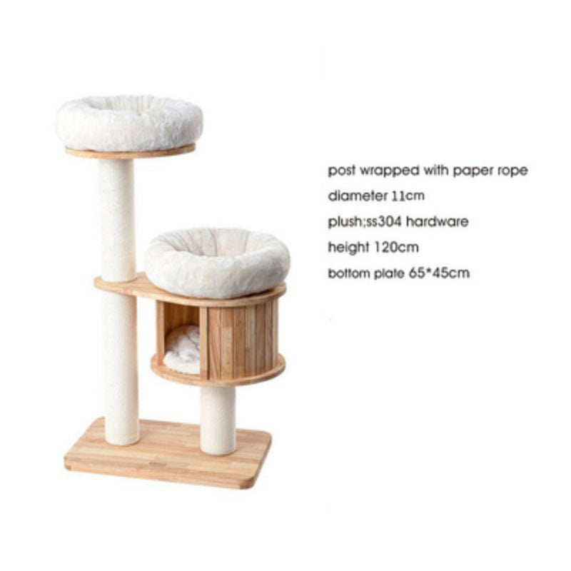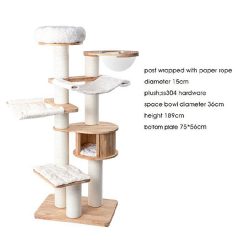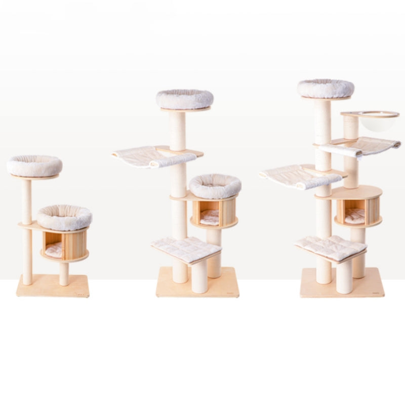 Cat Tree Solid Wood Cat Tower with Hammock & Space Capsule 3types