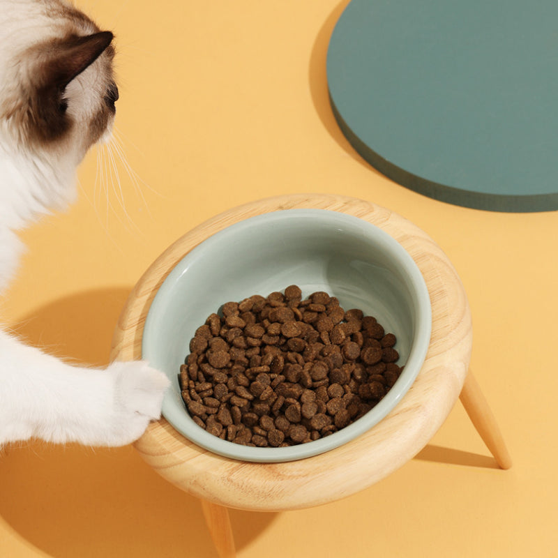 Ceramic height adjustable cat bowl dog bowl Wooden pet bowl