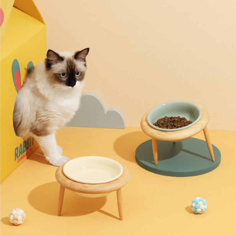 This Ceramic height adjustable cat bowl dog bowl Wooden pet bowl is perfect for cats and small dogs. It features a ceramic bowl that is easy to clean and won't foster bacterial growth, making it a safe and hygienic choice for your pet.