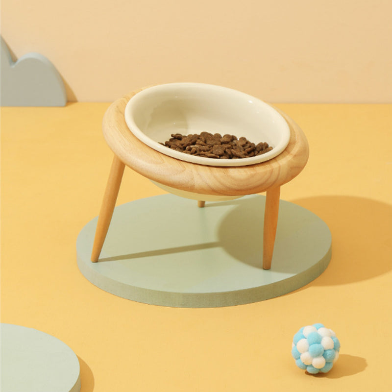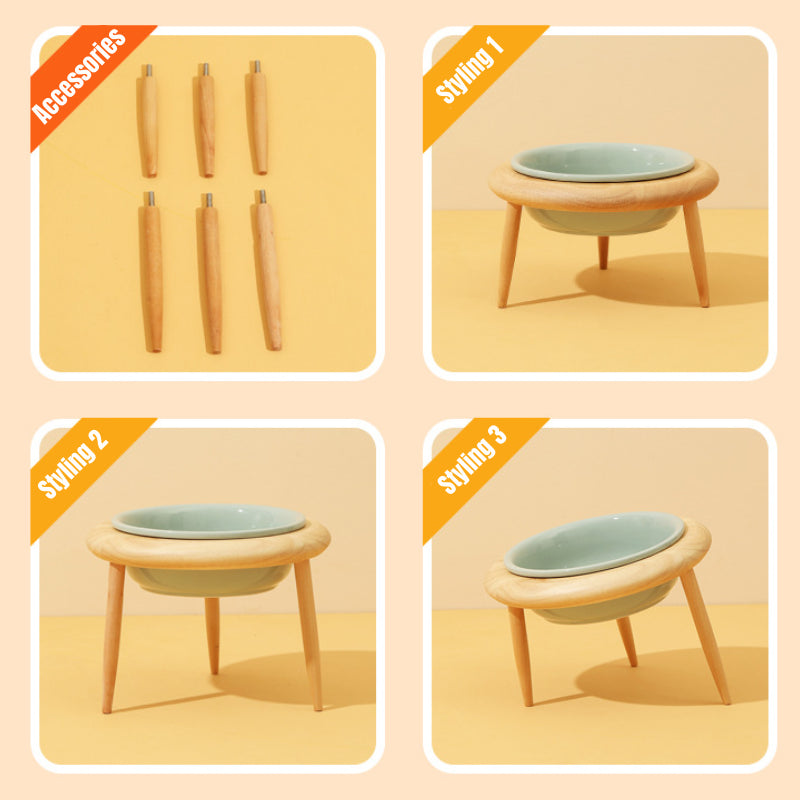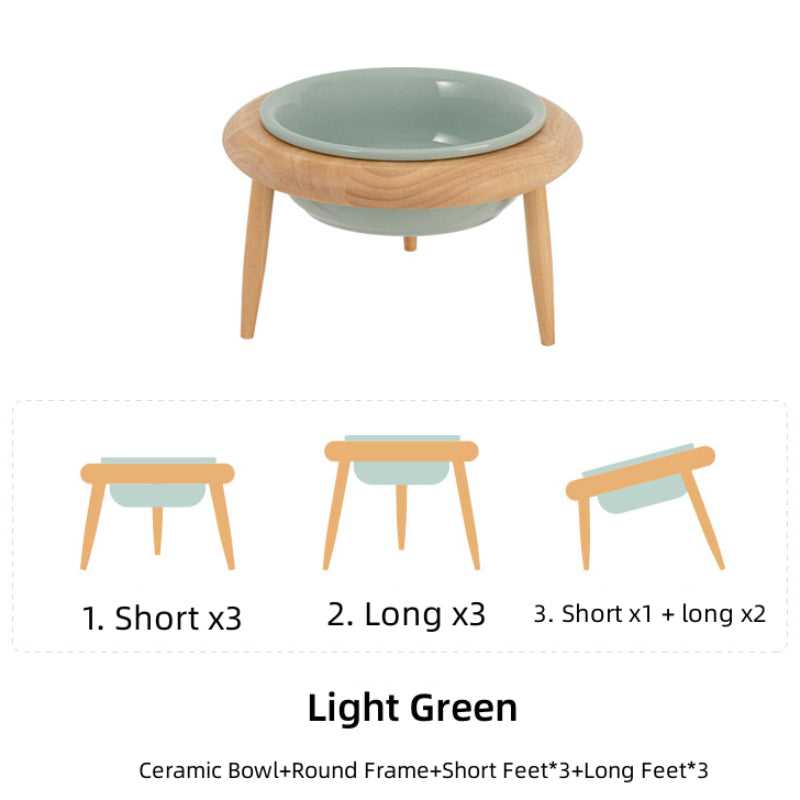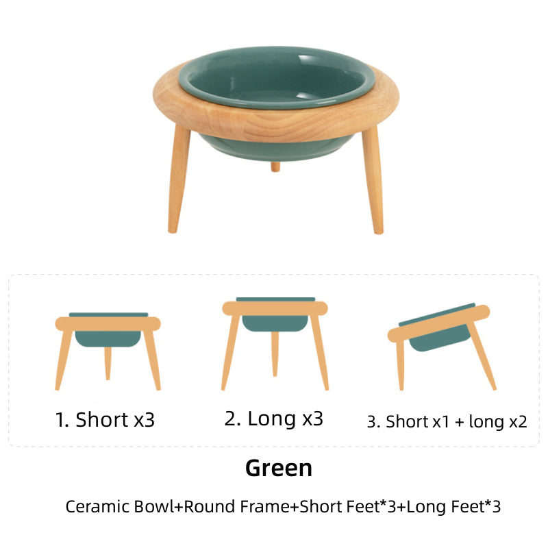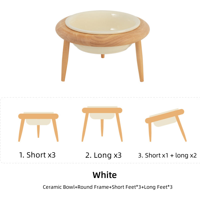 This ceramic pet bowl is perfect for cats and small dogs, with 3 short and 3 long feet for adjustable height. This bowl is made of durable ceramic, with a wooden base for a stylish look. Get the perfect angle for your pet's dining needs!