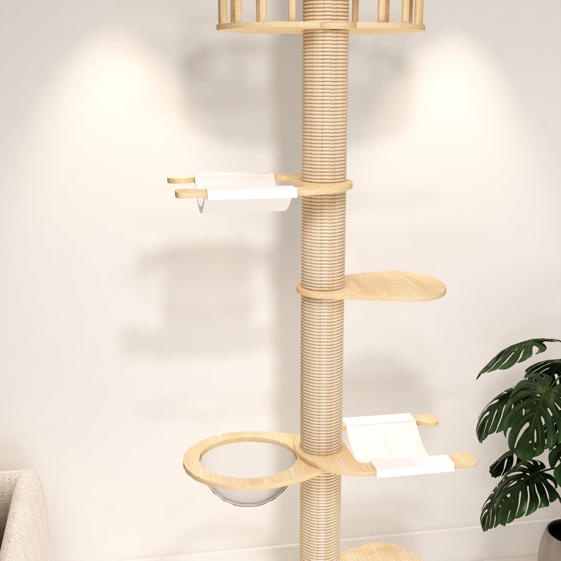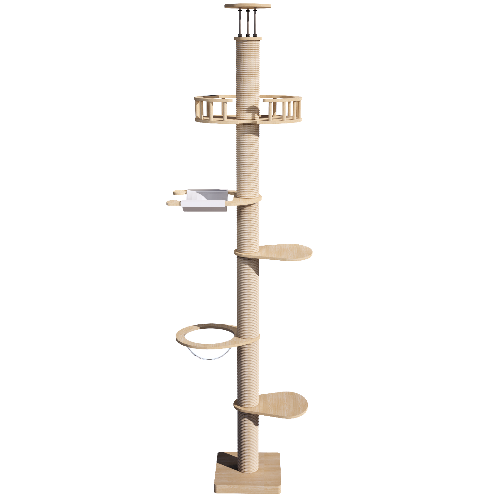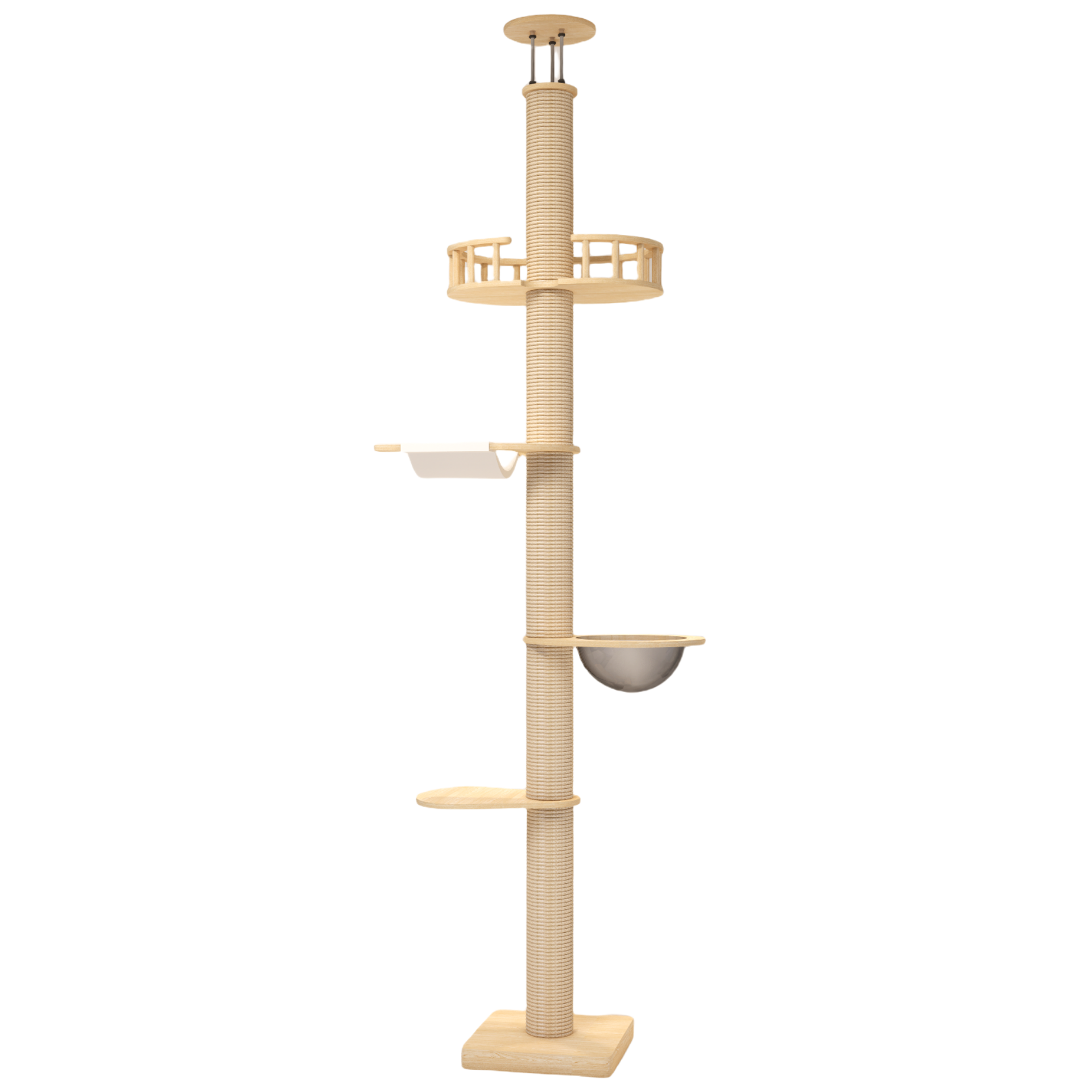 - Floor-to-Ceiling Design: This cat tree stands at an impressive 90-108 inches (9ft) tall, providing ample vertical space for your feline friend to climb, scratch, and lounge.