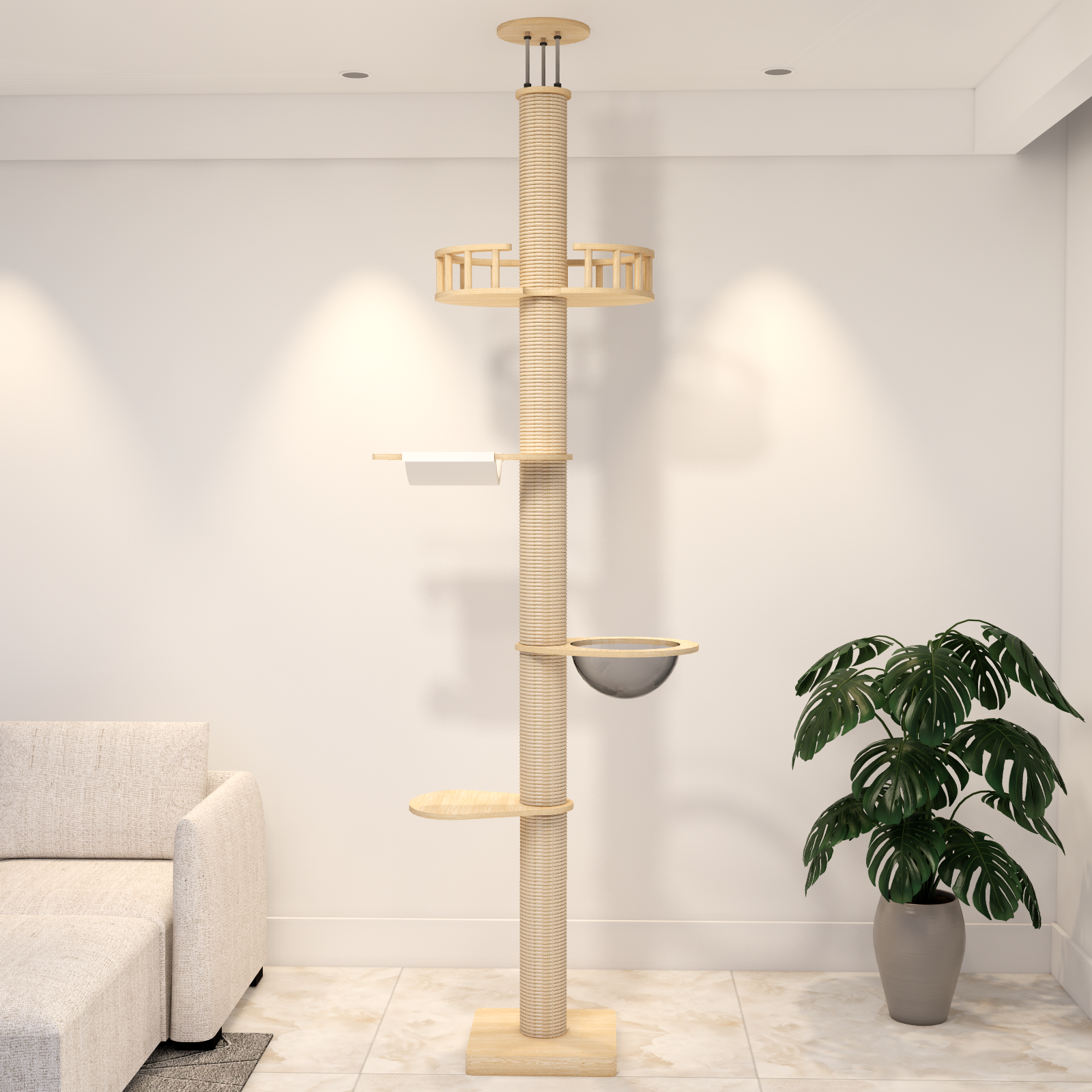 Floor to Ceiling Cat Trees Solid wood with Scratching Post For Large Cats-Top Upgrade