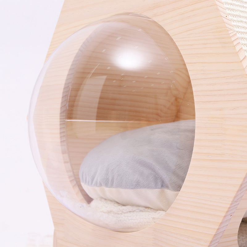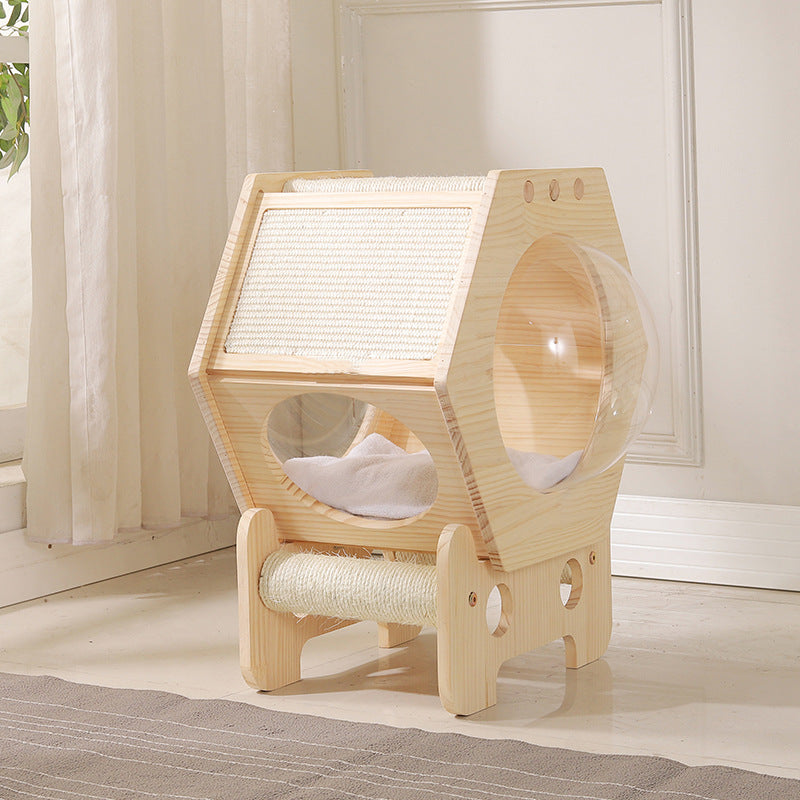Hexagonal Space Capsule Solid Wood Cat House Cat Supplies