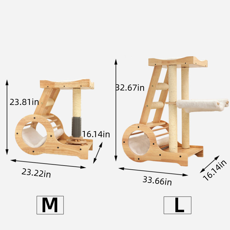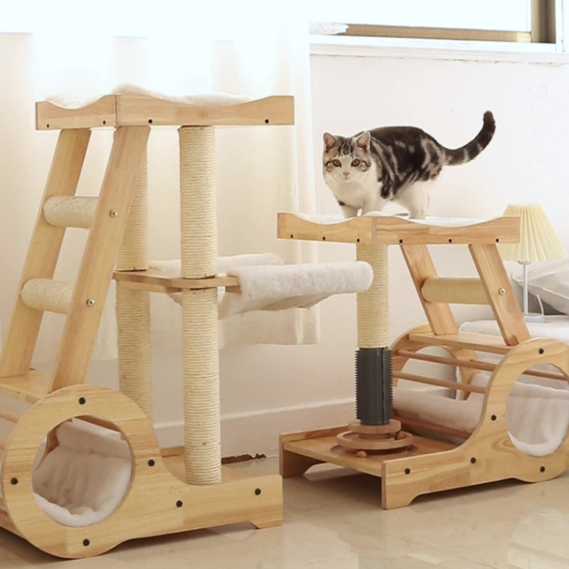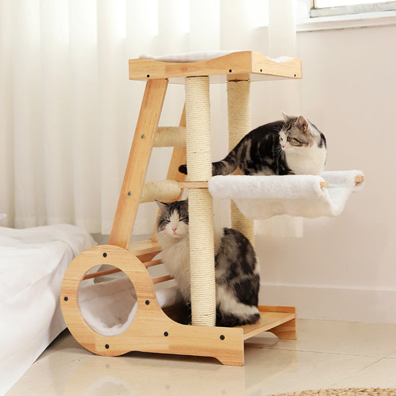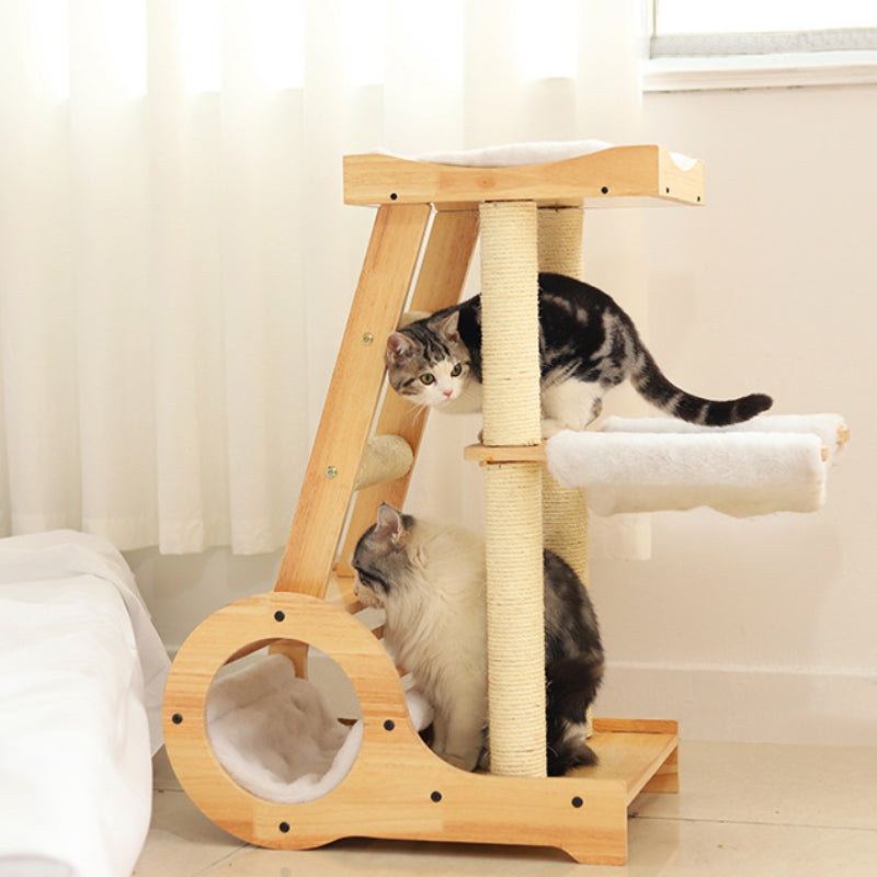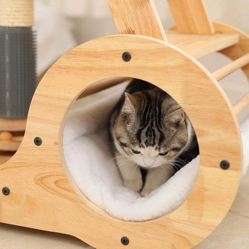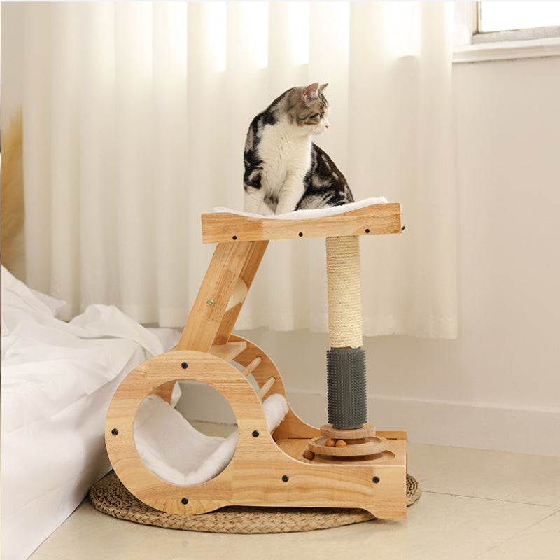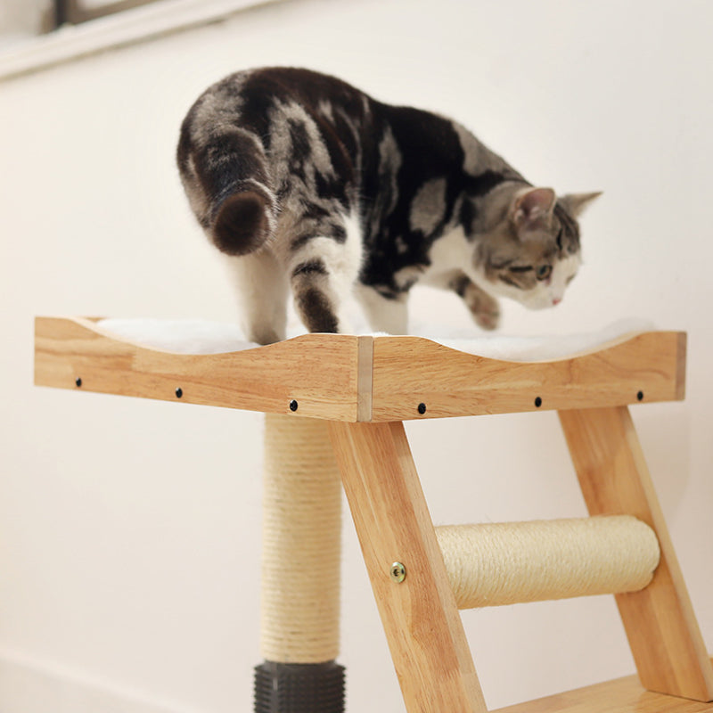 Integrated cat tree Solid wood cat bed Cat scratching post For Small Cat