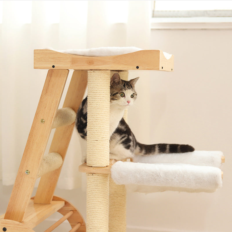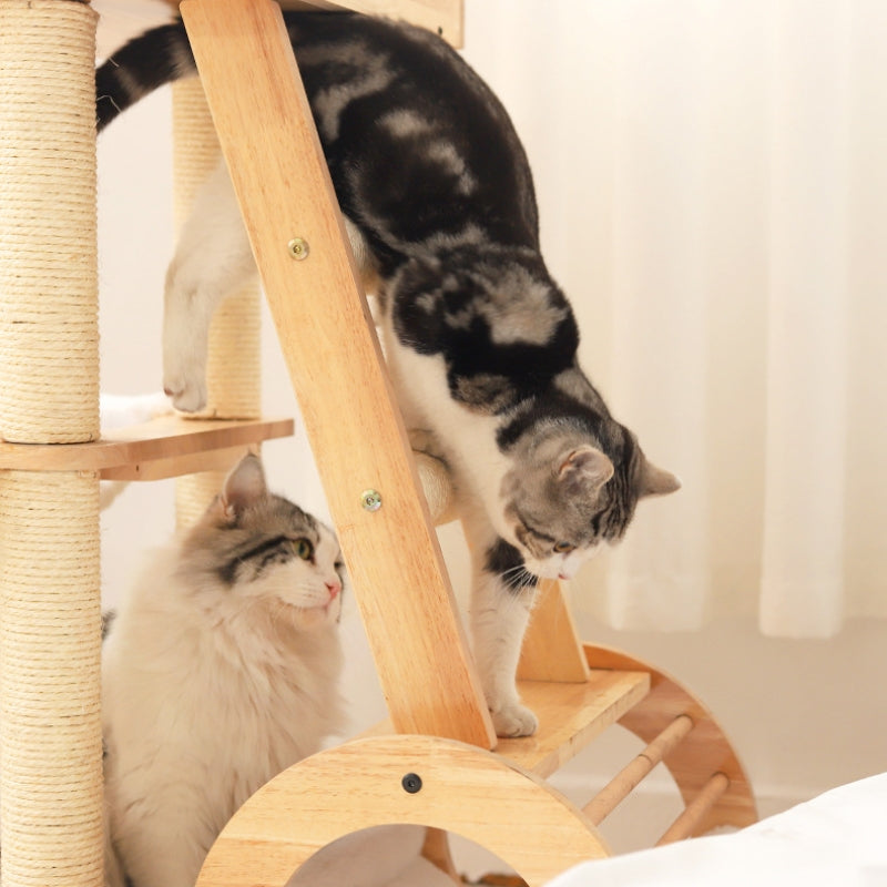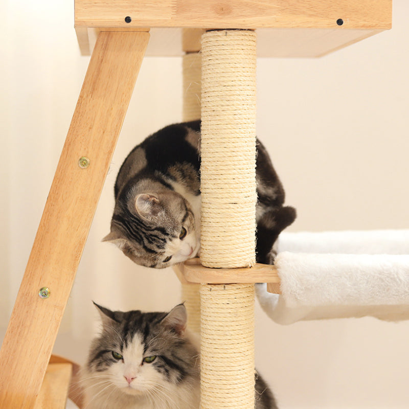 - This cat tree is made of solid wood, high-quality wood is resistant to corrosion and wear, and will not easily crack or deform.