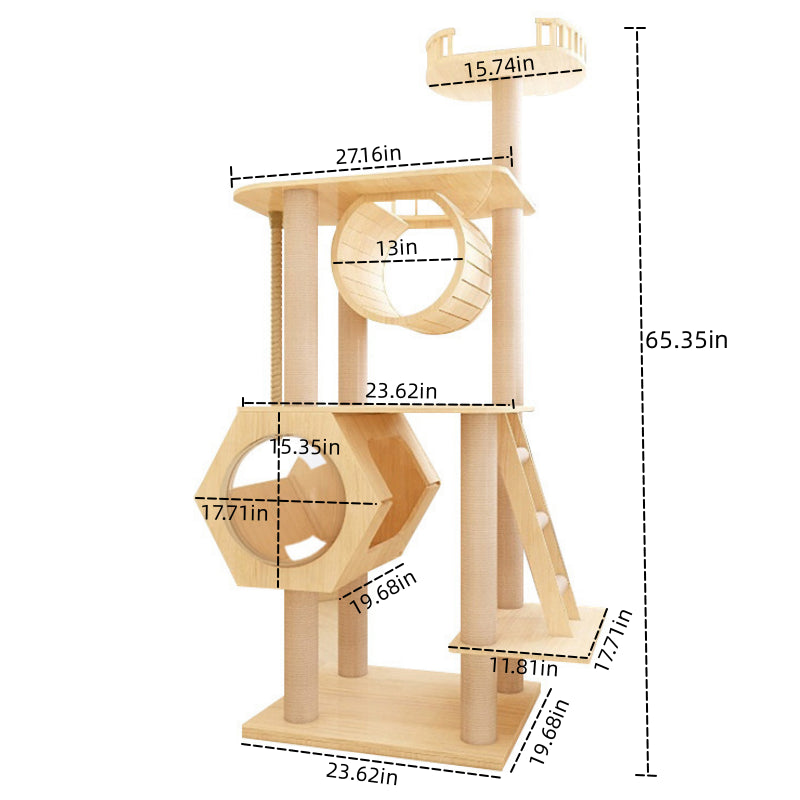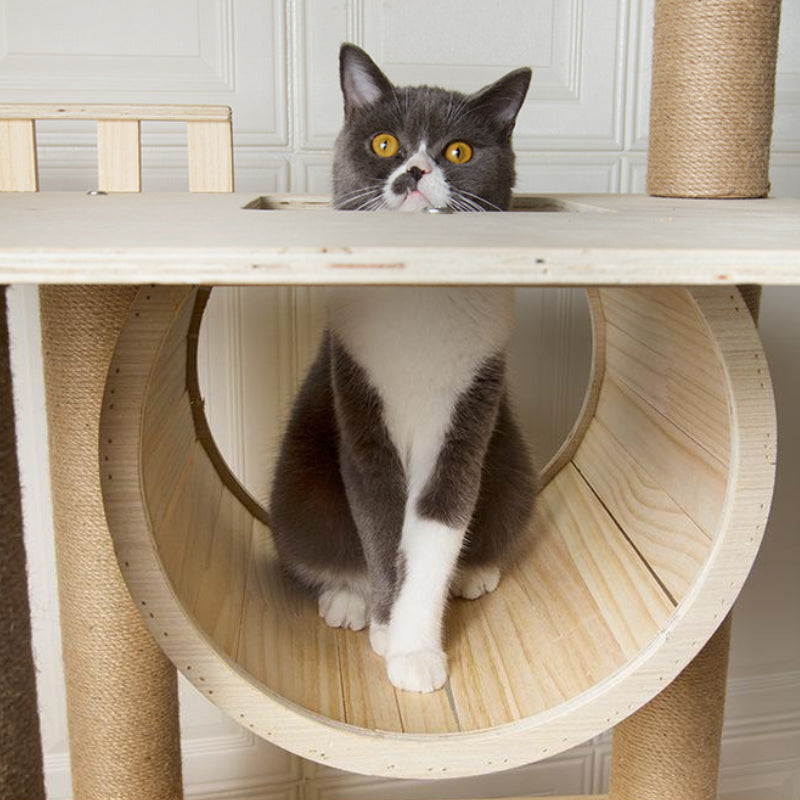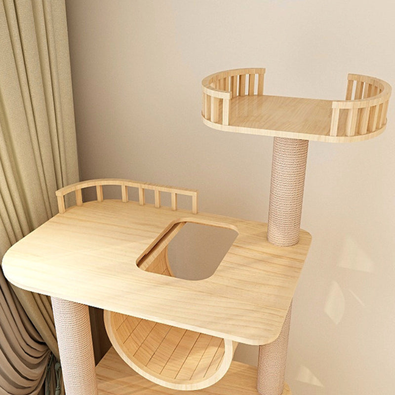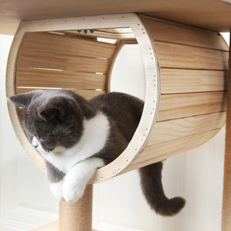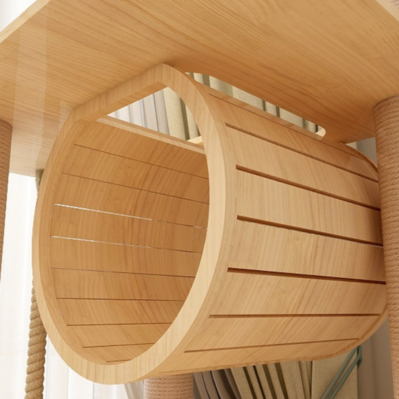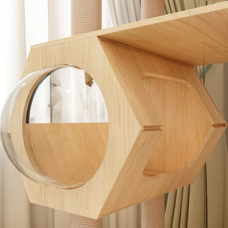 The warm tree hole made of pine wood in this tall cat tree allows cats to experience the fun of drilling and climbing;