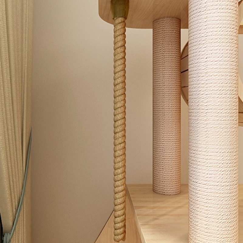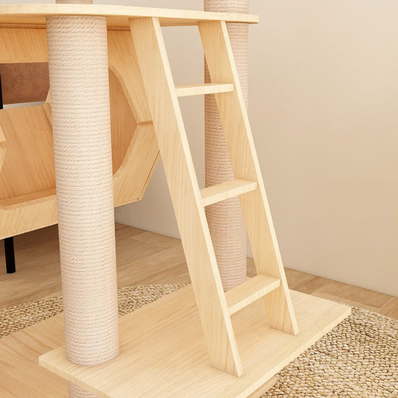 The solid wood ladder installed by the large cat tree is warm and beautiful, making it more convenient for cats to climb;