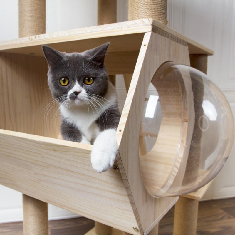 The transparent space capsule allows you to clearly observe the sleeping position of the cat;