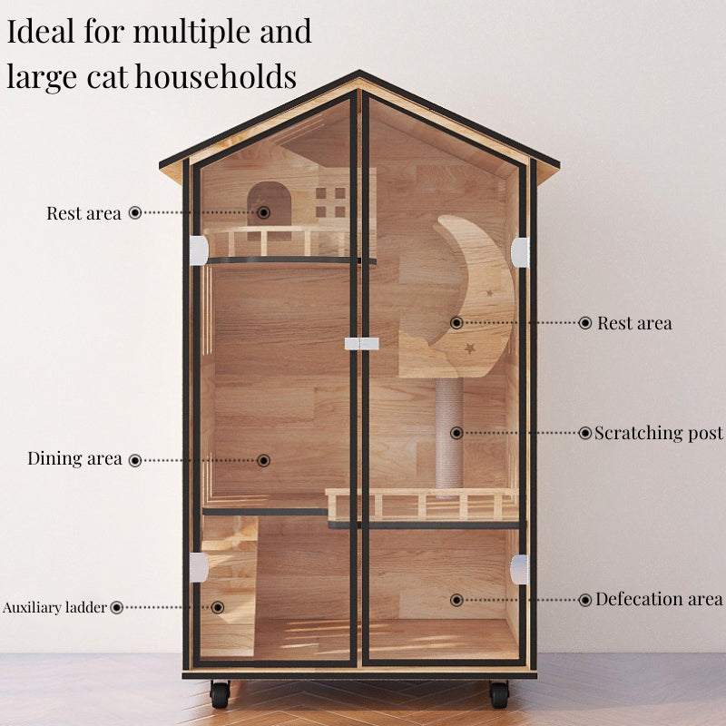 The Oversized Space Cat Cage adopts strong load-bearing universal wheels with brakes, so you can move wherever you want;