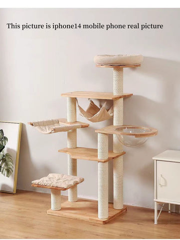 - [Reliable Quality] This cat climbing tower is made of premium rubberwood, ensuring its sturdiness and stability. Rubberwood is known for its exceptional durability and scratch resistance. With this modern cat tree, your cat can enjoy various activities like climbing, jumping, and scratching. It provides a solid and comfortable entertainment area without damaging your expensive furniture.