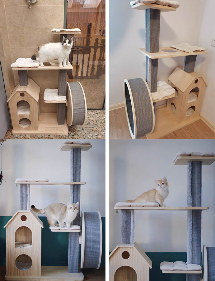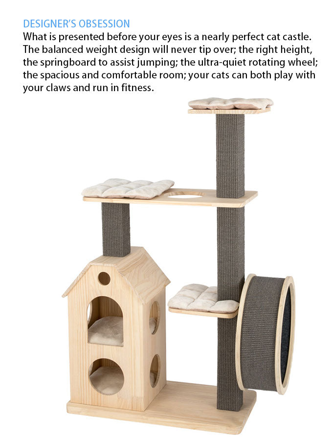 Imported Finnish pine wood Cat Tree With Cat Treadmill