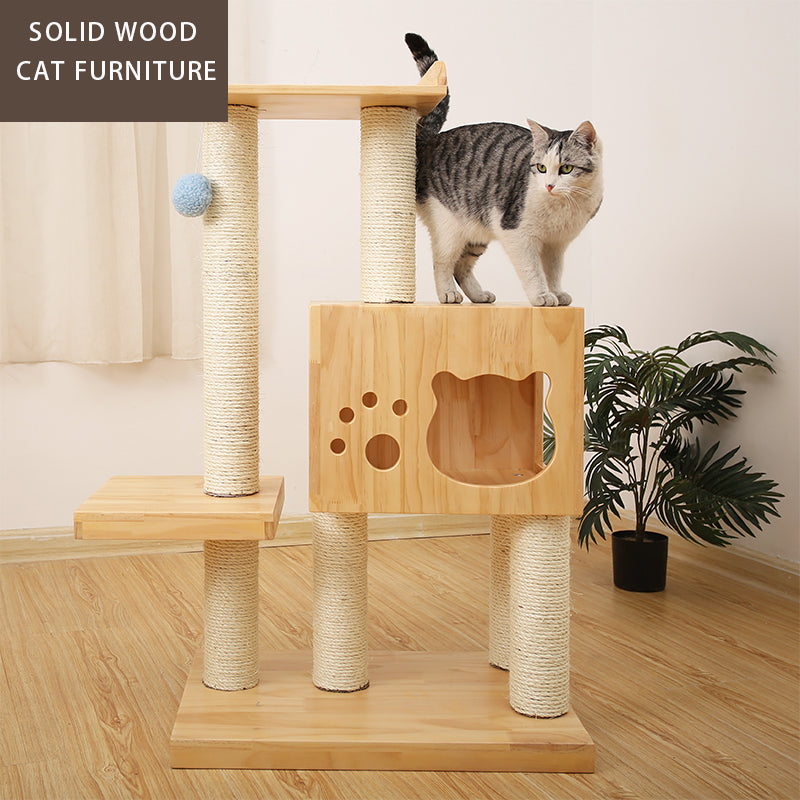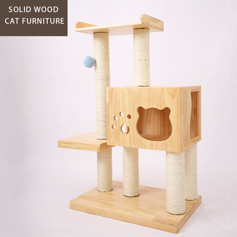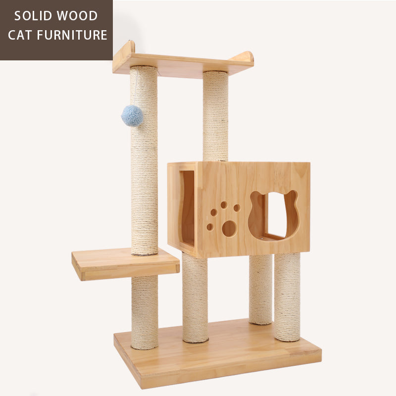 • This solid wood cat tree condo use natural solid wood, high-quality material, safe and non-irritating.