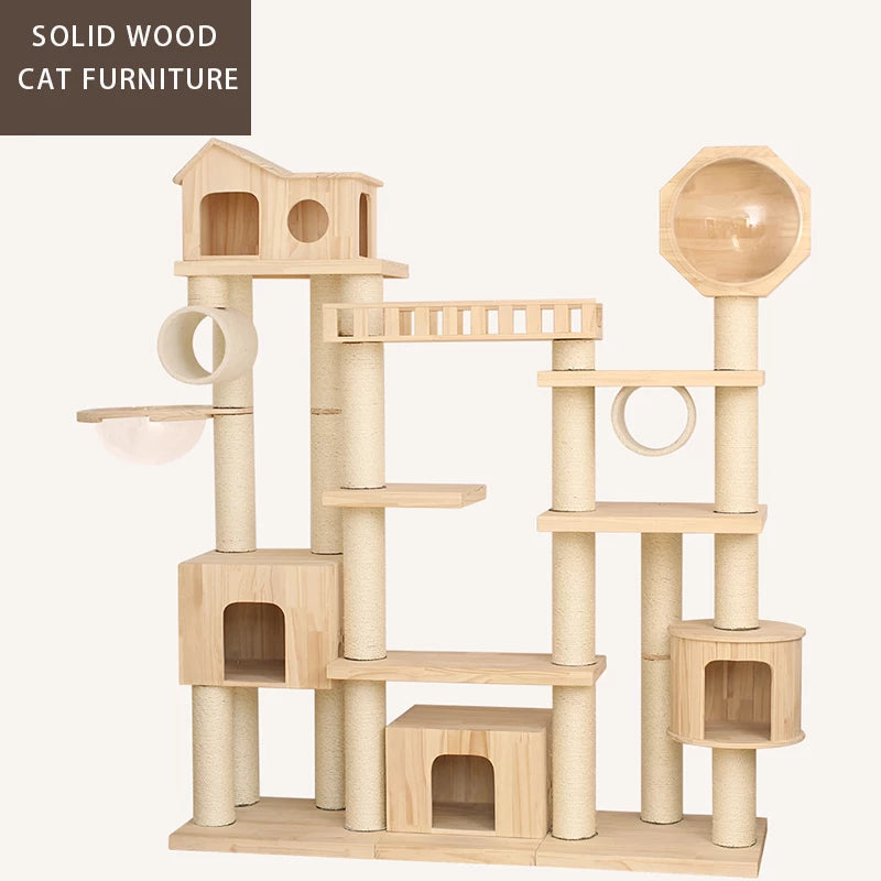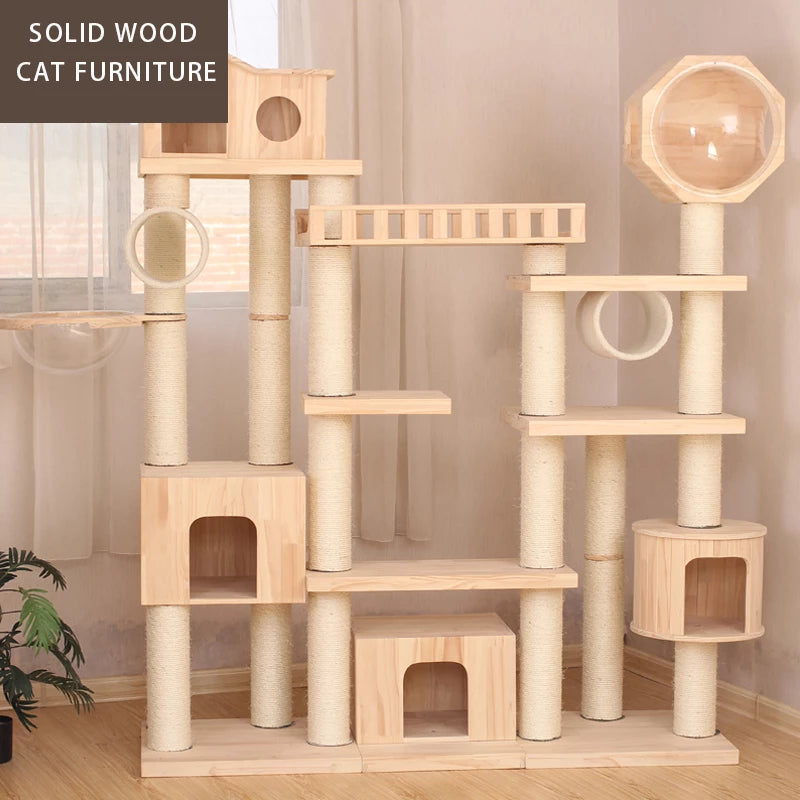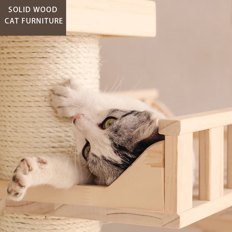 Oversized Cat Climbing Tree Deluxe Wood Cat Castle