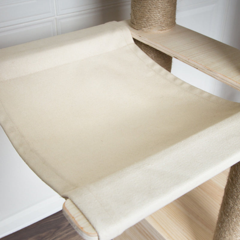 The hanging hammock on the wooden cat tower can better wrap the cat and bring more security to the cat;