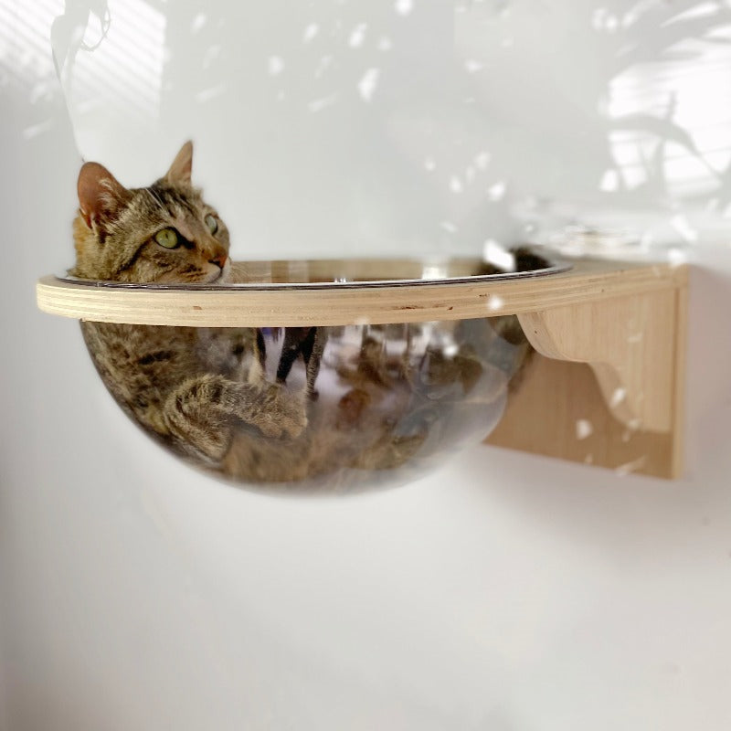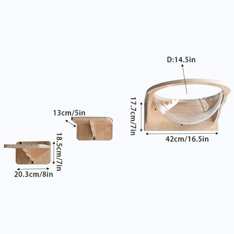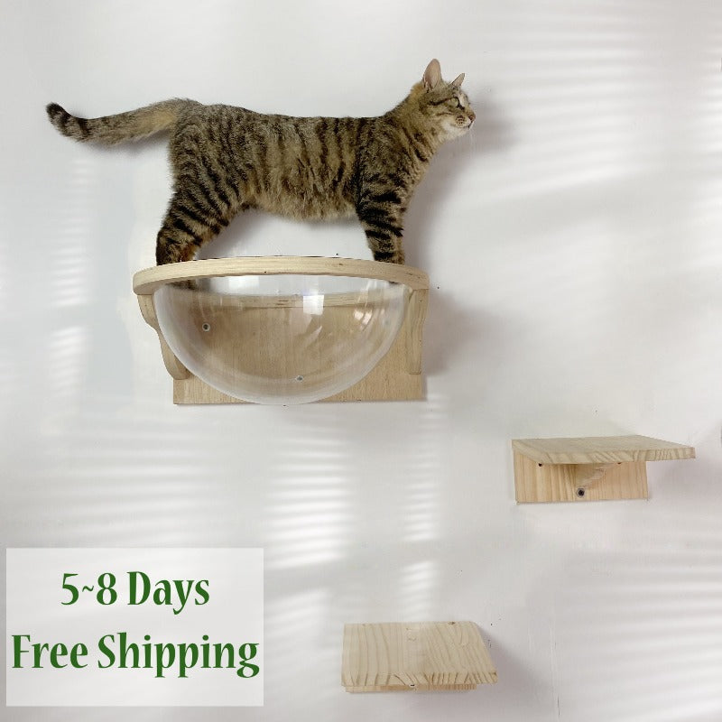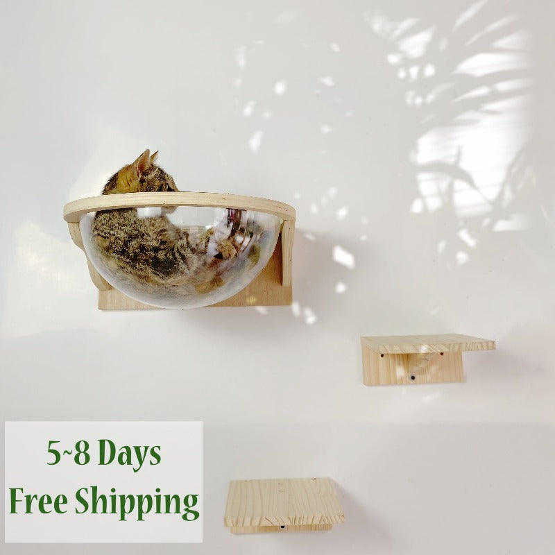 Note: This cat shelf contains a transparent cat bed + 2 small jumping platforms .