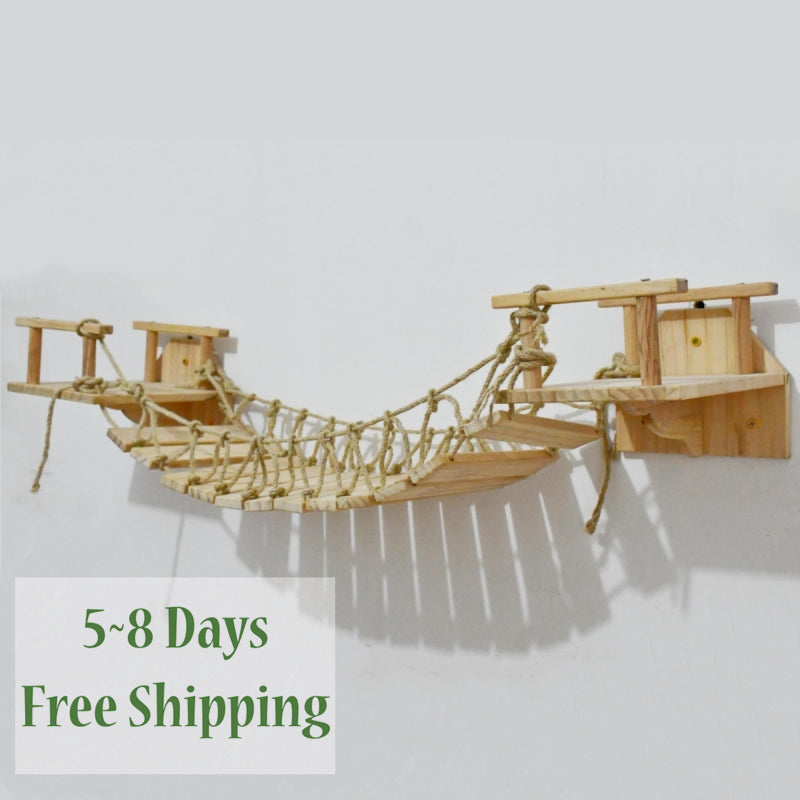High quality detailed design easily attached to the wall by screws and wall anchors (included), When traveling from house to house, why not set up a suspension bridge for your safety? Save your room space to install on the wall ,no worry to mess up your room anymore, It is easy to match the interior of the room with a cute design cat house.